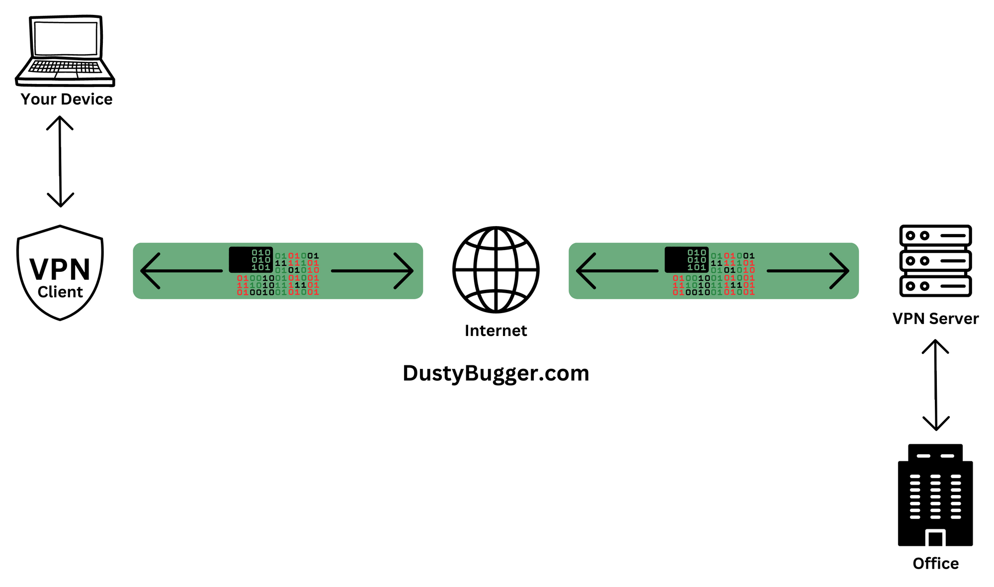 This means that while your Internet Service Provider(ISP) can see that your traffic is going to the VPN server, they cannot see the websites you are visiting or the data you send or recieve on the internet. Their view is obscured by the encryption and ends at the VPN server.